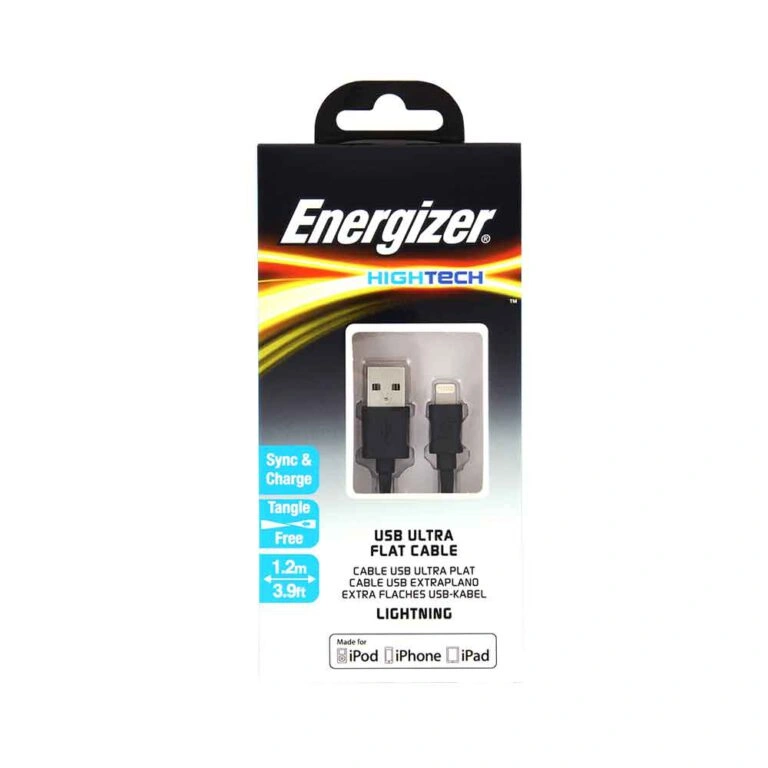 خانه لوازم جانبی کابل black ultra flat cable with lightning connector انرجایزر